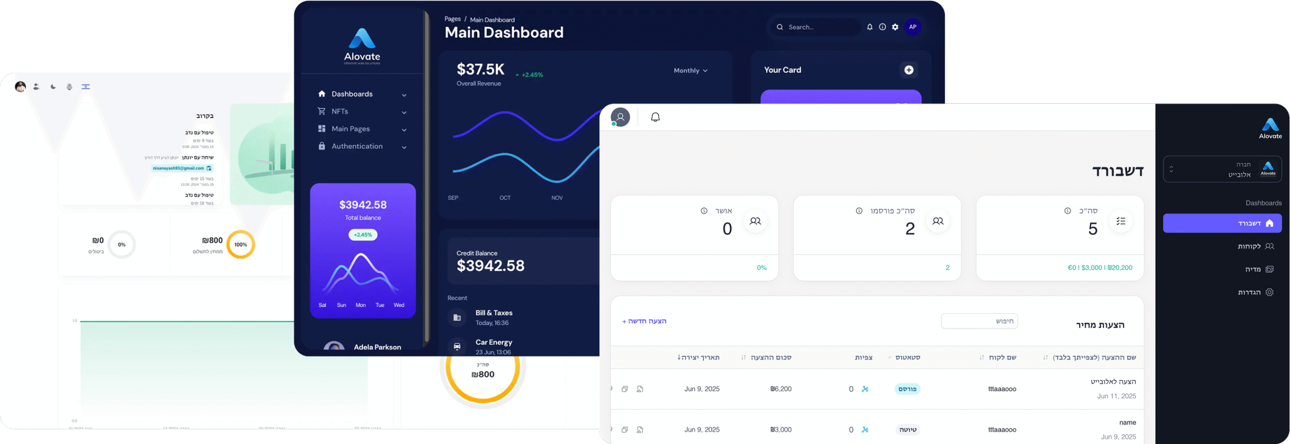 ב-Alovate תוכלו לקחת צוות ייעודי שיעזור לכם להתקדם מהר, חכם ויעיל יותר – החל ממנהל מוצר, מפתח או מעצב, ועד לצוות מלא של מקצוענים. אנחנו מרכיבים את הצוות לפי הצרכים המדויקים שלכם, כדי שתוכלו להתמקד במה שחשוב באמת – ולהביא תוצאות מהר.